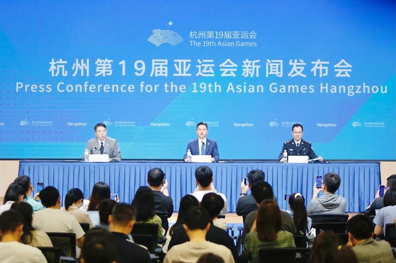 9月6日上午,杭州第19届亚运会火炬传递主题新闻发布会在杭州亚运会主媒体中心召开。杭州亚组委宣传部部长、杭州市委宣传部副部长许德清主持发布会,杭州亚运会火炬传递指挥中心副指挥长杜作锋介绍杭州亚运会火炬传递工作总体安排、火炬手基本情况及传递路线城市亮点,浙江省公安厅交通指挥中心主任蒋巨辉介绍杭州亚运会火炬传递运行阶段安全保障情况。