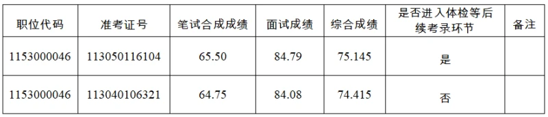 综合成绩按照笔试合成成绩、面试成绩各占50%的比例合成,笔试合成成绩、面试成绩四舍五入后均保留至小数点后2位,综合成绩四舍五入后保留至小数点后3位。具体综合成绩详见附件。
