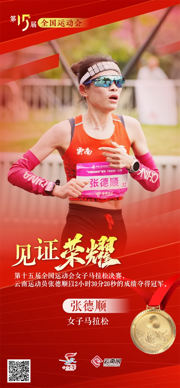 11月15日,在第十五届全国运动会女子马拉松决赛中,云南运动员张德顺凭借出色的节奏控制和后半程的强大冲刺能力,以2小时30分20秒的成绩夺得冠军,为云南省情色小说 代表团摘下本届全运会的第3块金牌。她也凭此成为全运会历史上首位连续两届获得马拉松冠军的运动员。