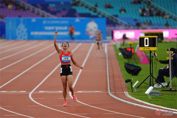 第十五届全国运动会田径女子3000米障碍决赛现场,云南运动员罗霞以9分26秒44的成绩获得金牌。