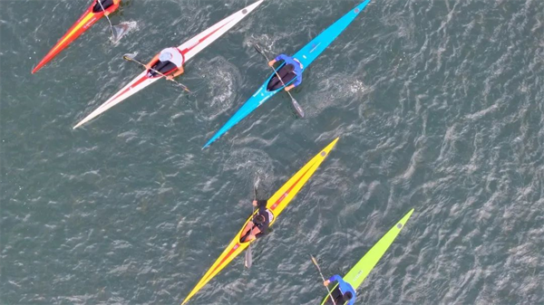当天上午,男子单人5000米皮艇比赛正式拉开了此次大赛的序幕。随着裁判员的一声哨响,一艘艘皮划艇如离弦之箭,选手们开桨竞逐、劈波斩浪,风驰电掣向前划行。看着选手们在湖面上演的精彩比赛,湖边的观众也被调动了起来,加油声、呐喊声此起彼伏,现场热闹非凡。