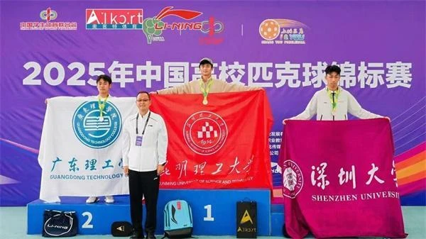 近日,2025年中国高校匹克球锦标赛在江西赣州上犹县落幕。昆明理工大学2025级运动训练专业学生李想,在男子丙组单打项目中历经六轮鏖战,最终以实力勇夺冠军。