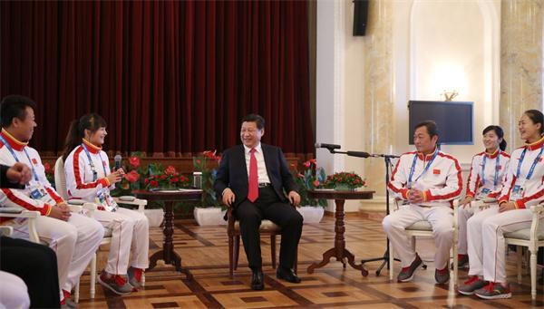 专门邀请刚刚获得2019年女排世界杯冠军的中国女排队员、教练员代表参加庆祝中华人民共和国成立70周年招待会;南京青奥会开幕前夕,来到青奥村训练馆篮球场边,勉励大家“可把篮球的目标定得更高点,争取拿到更好的成绩”;主持召开十八届中央全面深化改革领导小组第十次会议,审议通过《中国足球改革总体方案》……