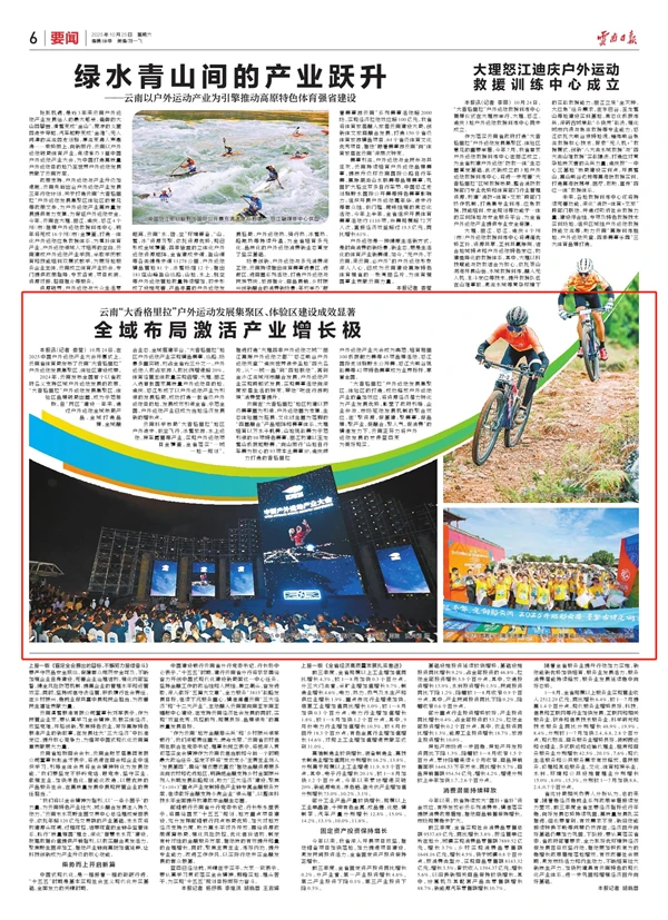 “大香格里拉”户外运动发展集聚区、体验区的打造,成功释放户外运动产业的叠加效应,将资源经济潜力转化为产业发展优势,彰显了政府引导、企业参与、市场驱动发展机制的聚合效应。在“聚资源,促基建;聚赛事,促品牌;聚产业,促融合;聚人气,促消费”的精准发力下,云南正努力将户外运动发展的宏伟蓝图变为美好现实。