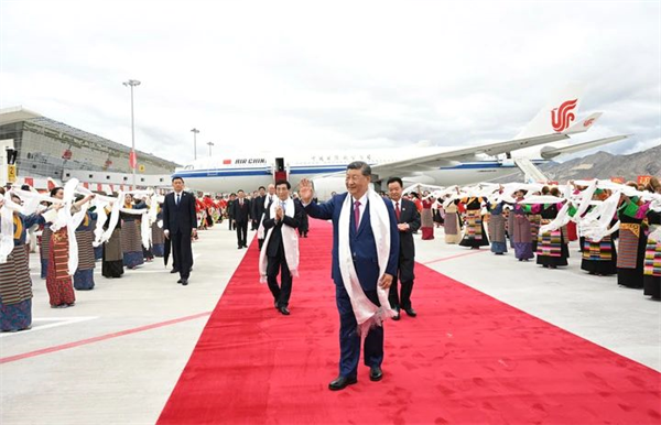 习近平作为中共中央总书记、国家主席、中央军委主席率中央代表团到西藏出席西藏自治区成立庆祝活动,在党和国家历史上是第一次。