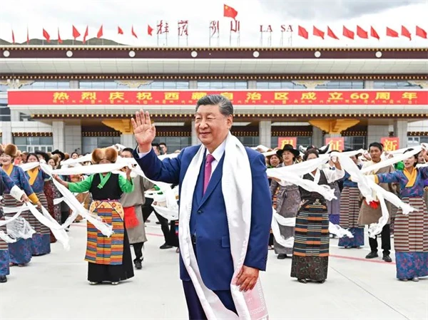 初秋的青藏高原,清风送爽。8月20日中午,习近平总书记率中央代表团抵达拉萨,出席西藏自治区成立60周年庆祝活动。
