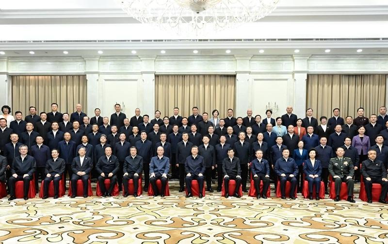 9月23日下午,中共中央总书记、国家主席、中央军委主席习近平在乌鲁木齐亲切接见新疆各族各界代表,并同大家合影留念。新华社记者 燕雁 摄