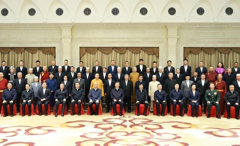 9月23日下午,中共中央总书记、国家主席、中央军委主席习近平在乌鲁木齐亲切接见新疆维吾尔自治区宗教界爱国人士和基层宗教工作干部代表,并同大家合影留念。新华社记者 丁林 摄
