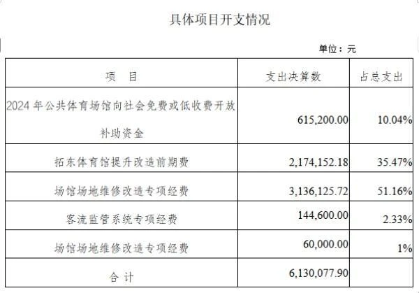场馆场地维修改造专项经费项目经费3136125.72元,主要用于游泳馆维修改造、体操馆维修维护、风雨巷场馆屋面补漏、拓东情色小说 场维修维护、场馆零星维修等方面。