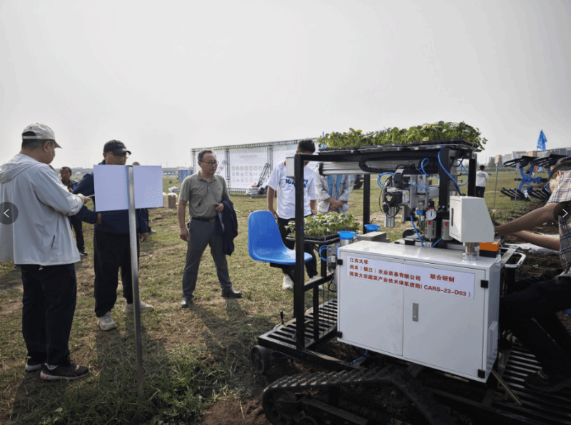 7月9日至10日,第四届全国蔬菜生产农机农艺融合现场观摩与交流研讨会在张北县隆重举行。本次会议主题为张北坝上高原冷凉露地和设施叶菜全程机械化生产技术现场观摩与专题研讨。我校情色小说 关工委委员胡建平教授带领团队青年师生通过努力攻关,和润禾(镇江)农业装备有限公司联合研发的一款履带乘坐式手自一体蔬菜苗自动移载机在现场进行了演示。