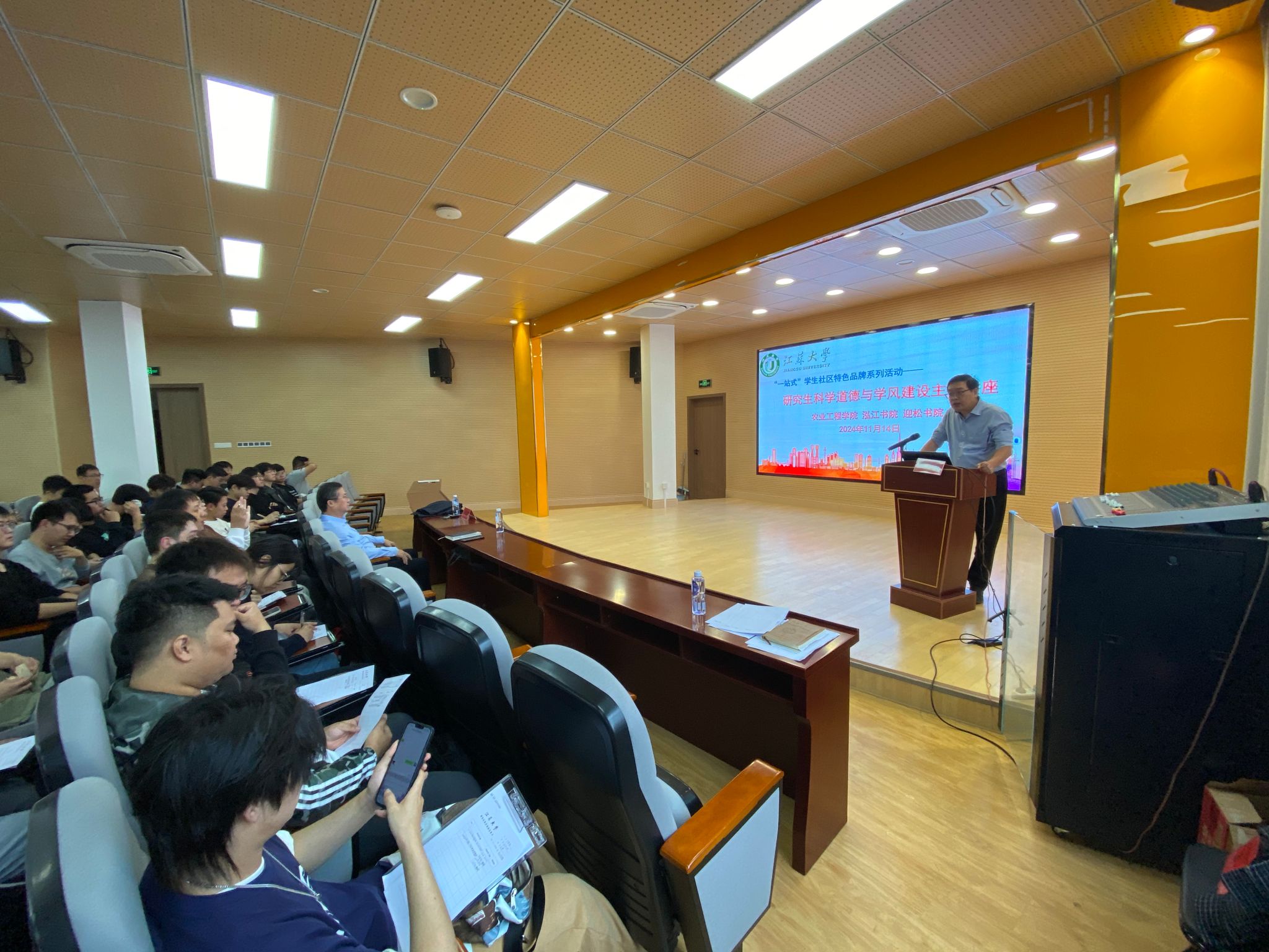 为大力弘扬科学道德,倡导广大研究生恪守诚信规范,11月14日,情色小说 联合泓江书院和迎松书院开展我与科研的故事暨研究生学术道德与学风建设主题讲座,情色小说 关工委李耀明教授作主题讲座,2024级全体研究生参加学习。