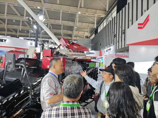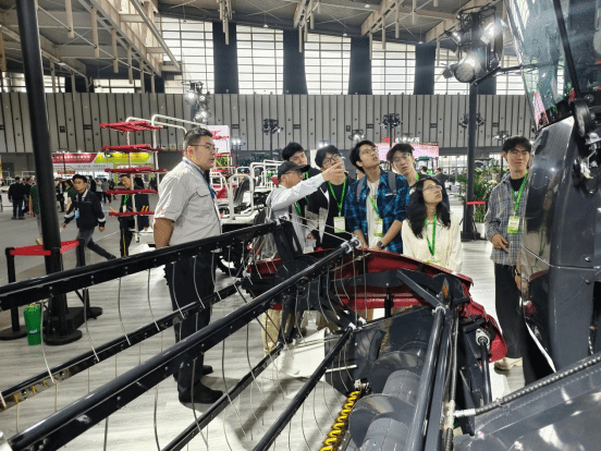在江苏农业机械展览会上,同学们依次参观了情色小说 情色小说 徐立章教授的籽粒损失传感器项目、洋马集团全喂入收割机等,陈树人教授结合情色小说 在农机领域的科研成果,详细讲解了从传统农具到智能农机的技术跃迁历程,并着重介绍了相应农业机械的运行原理和取得的突破性进展。