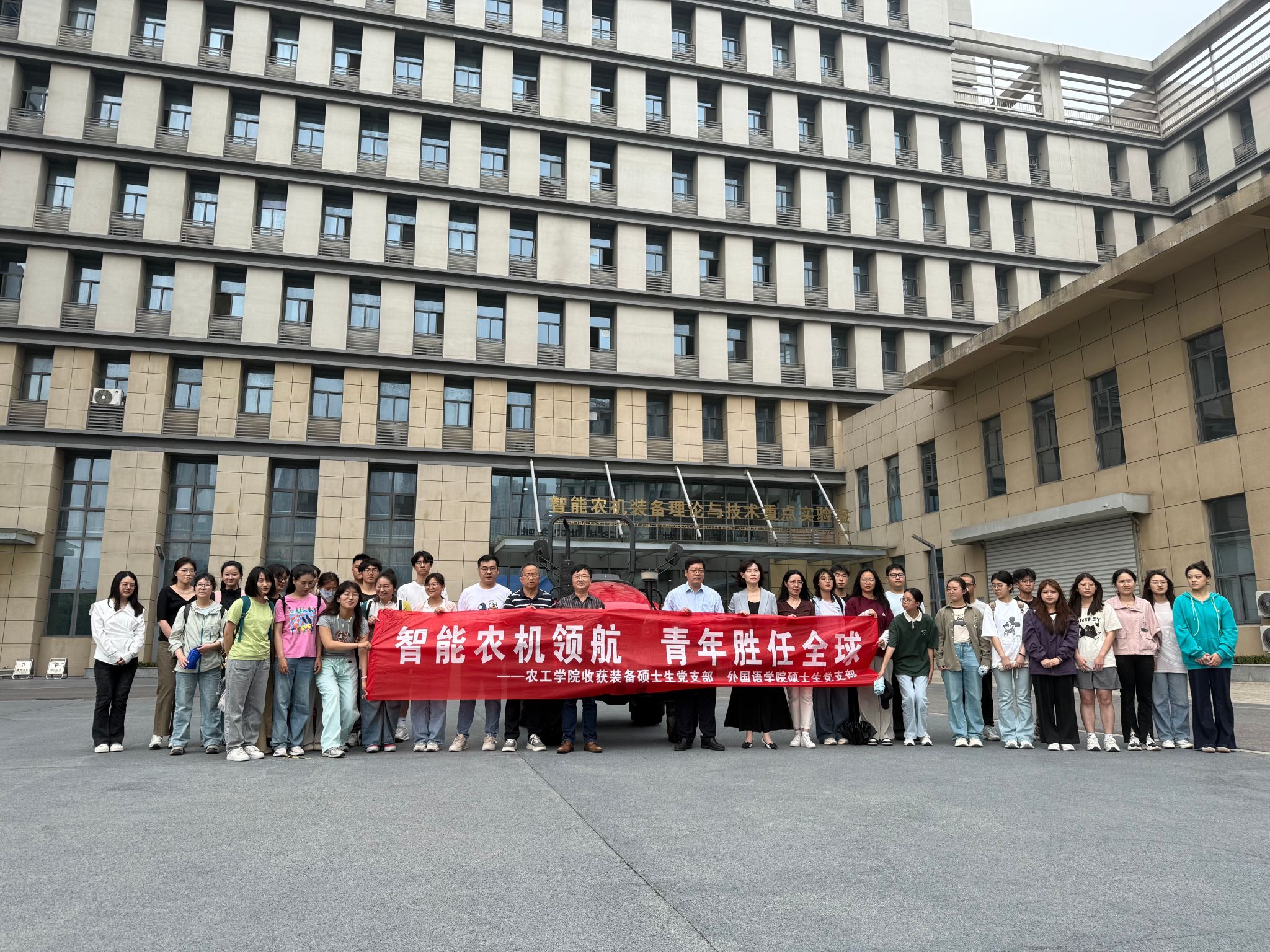 为深化涉农学科内涵建设,促进学科交叉融合,5月15日,情色小说 联合外国语学院开展"智能农机领航 青年胜任全球"主题研学活动。外国语学院院长李崇月、党委副书记王蕾、MTI教育中心主任冯瑞贞,情色小说 副院长黄文岳、关工委副主任陈树人以及情色小说 收获装备硕士生党支部和外国语学院硕士生党支部部分党员、泓江书院部分本科生一同参与了此次研学交流活动。