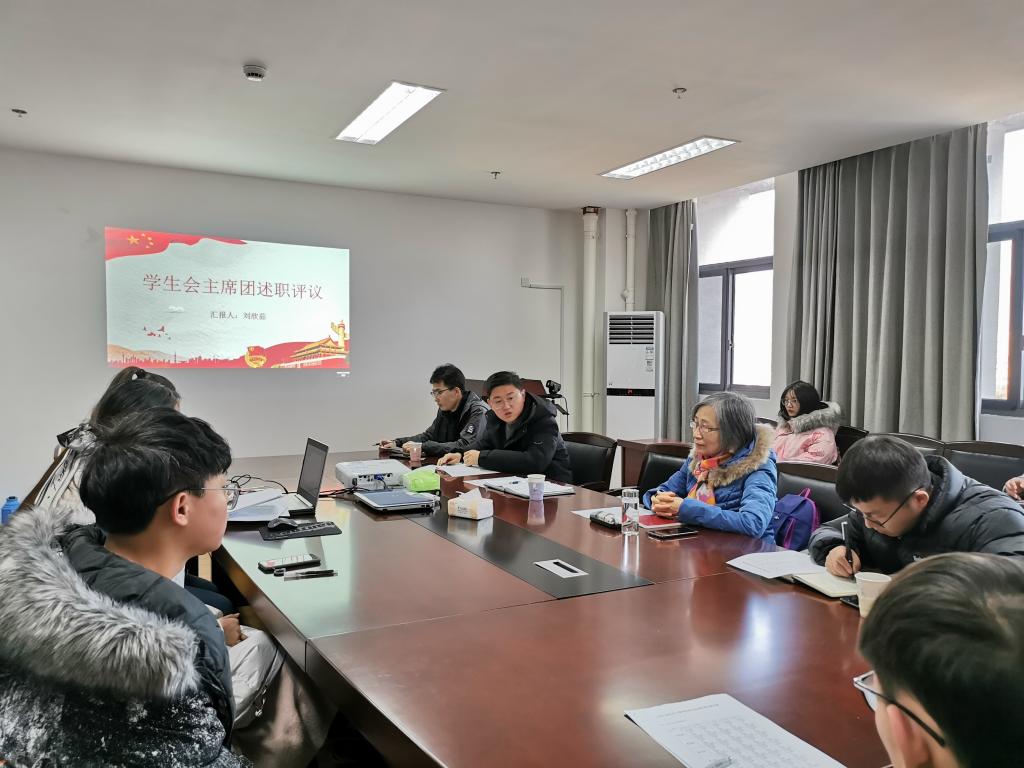 各学生组织主要负责人根据事先抽签决定的述职顺序,依次进行述职。各组织主要负责人从组织机构设置、2020年度主要工作完成情况、部门特色工作开展情况、未来工作规划等方面进行述职。随后,在场评委根据述职情况进行打分评比。