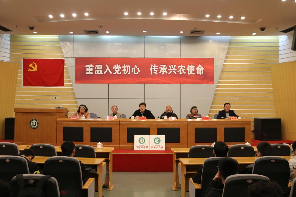 4月7日,学院党委与校关工委在学校会议中心第一报告厅开展“重温入党初心 传承兴农使命”主题党史学习教育。学院党委书记、关工委主任金玉成,党委副书记、副院长周军,校关工委副主任兼秘书长汤静霞,校离退休党工委机械支部陆一心、陈翠英、陈嘉真等老教授应邀出席活动。