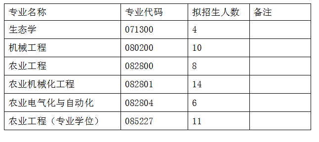 农业装备工程学院2015年硕士研究生招生计划数如下表: