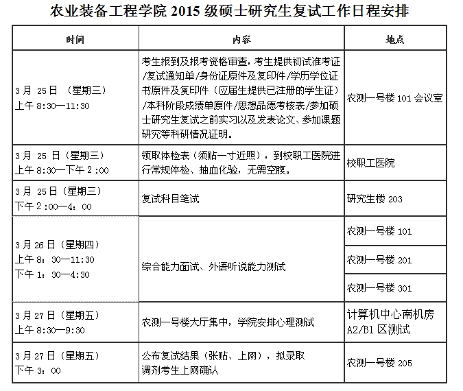 农装院2015年研究生复试调剂志愿考生进入复试名单